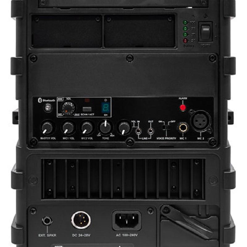 - Récepteur UHF 16 fréquences intégré pour pouvoir connecter un micro main, serre-tête ou cravate.
